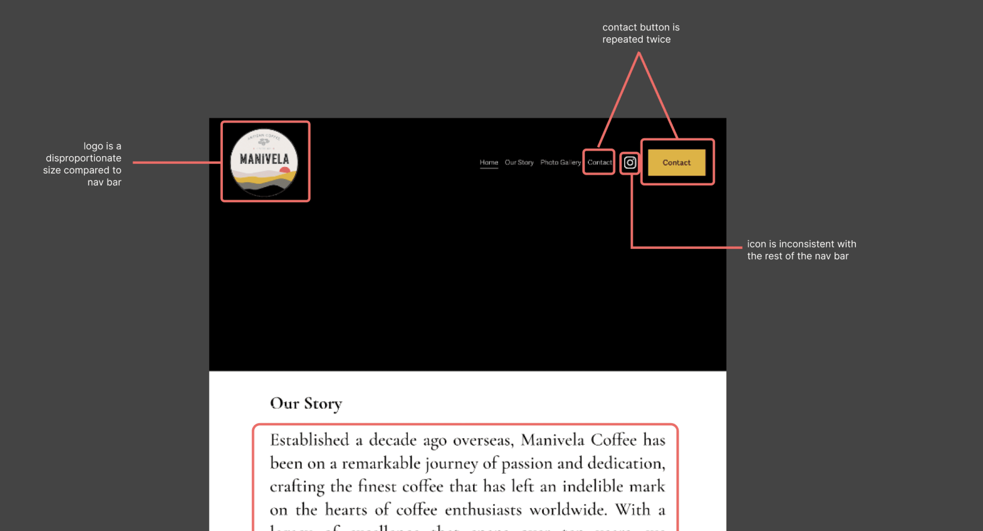 At this point, I discussed with the other designers to define the direction of the homepage. While we agreed to anchor Immersion’s coffee photos as the website’s backdrop for full immersion and shades of brown Birtan had requested, something still felt incomplete.