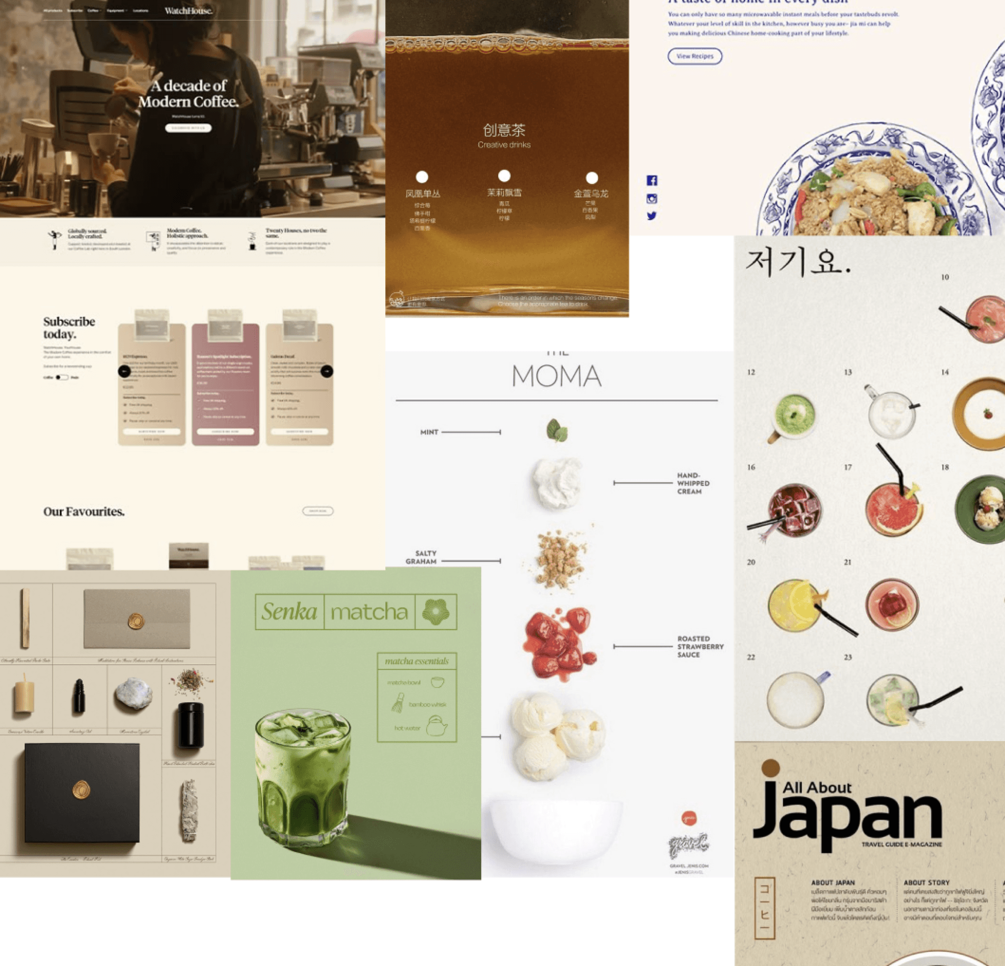 Let the pictures of the coffee speak for themselves → intentional space, minimal text