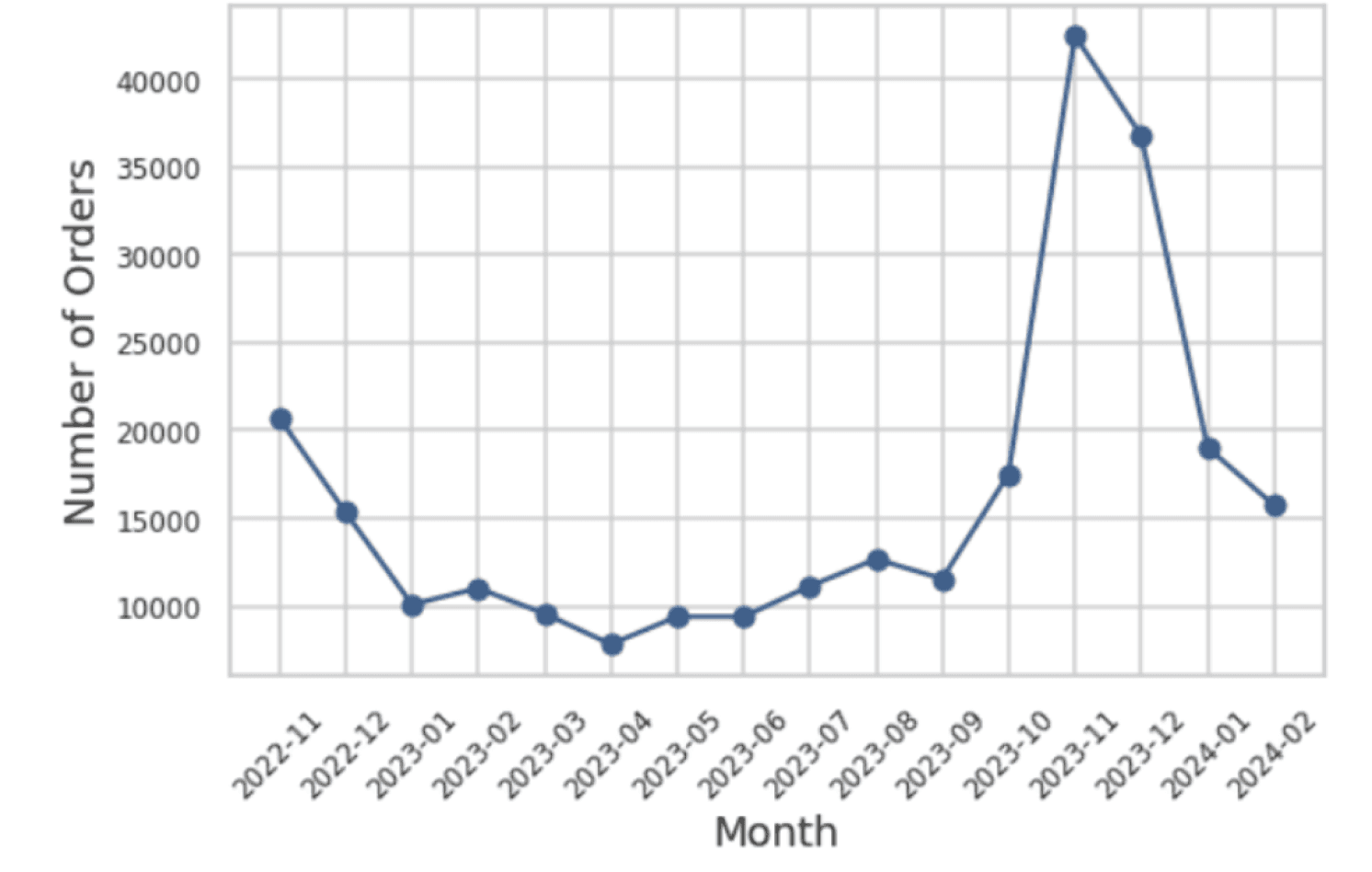 Strategically introduce more promotional sales during non-holiday months, especially when there are dips