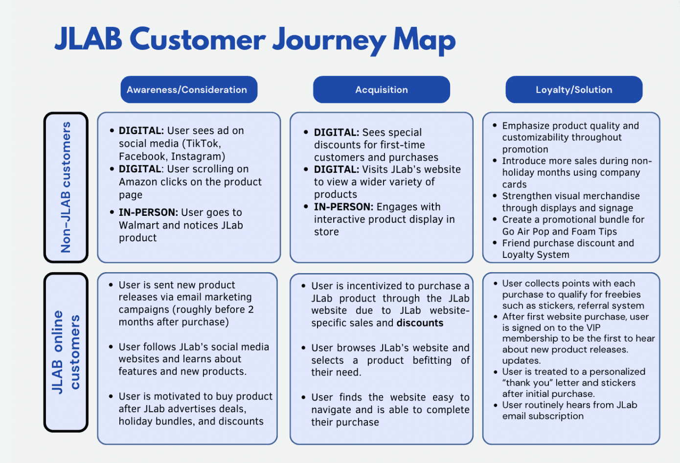 Developed a Customer Journey Map outlining important touch points in purchasing headphones